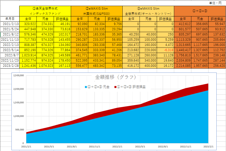 証券会社は楽天証券を使用し、下記の3銘柄へ毎月投資をしています。
